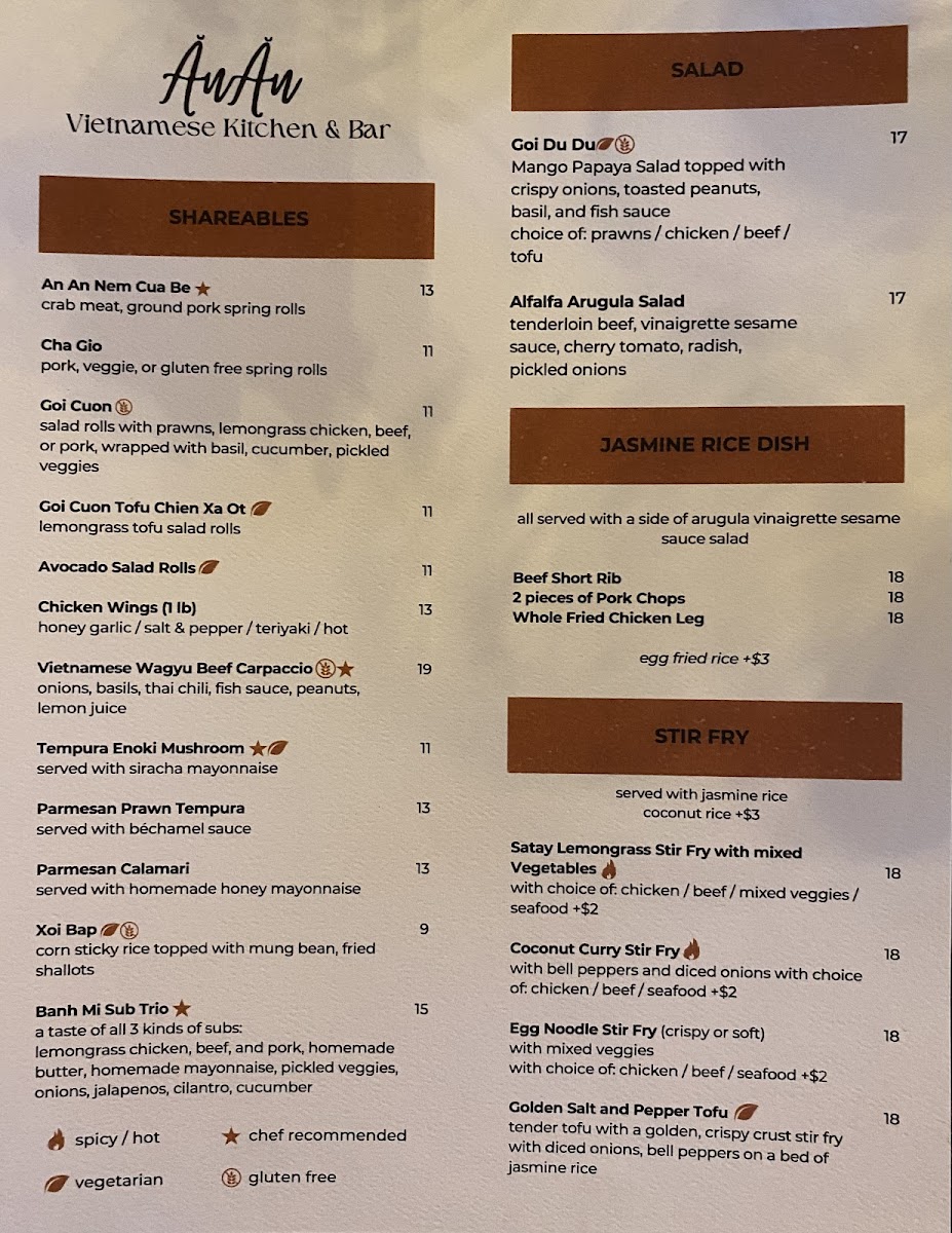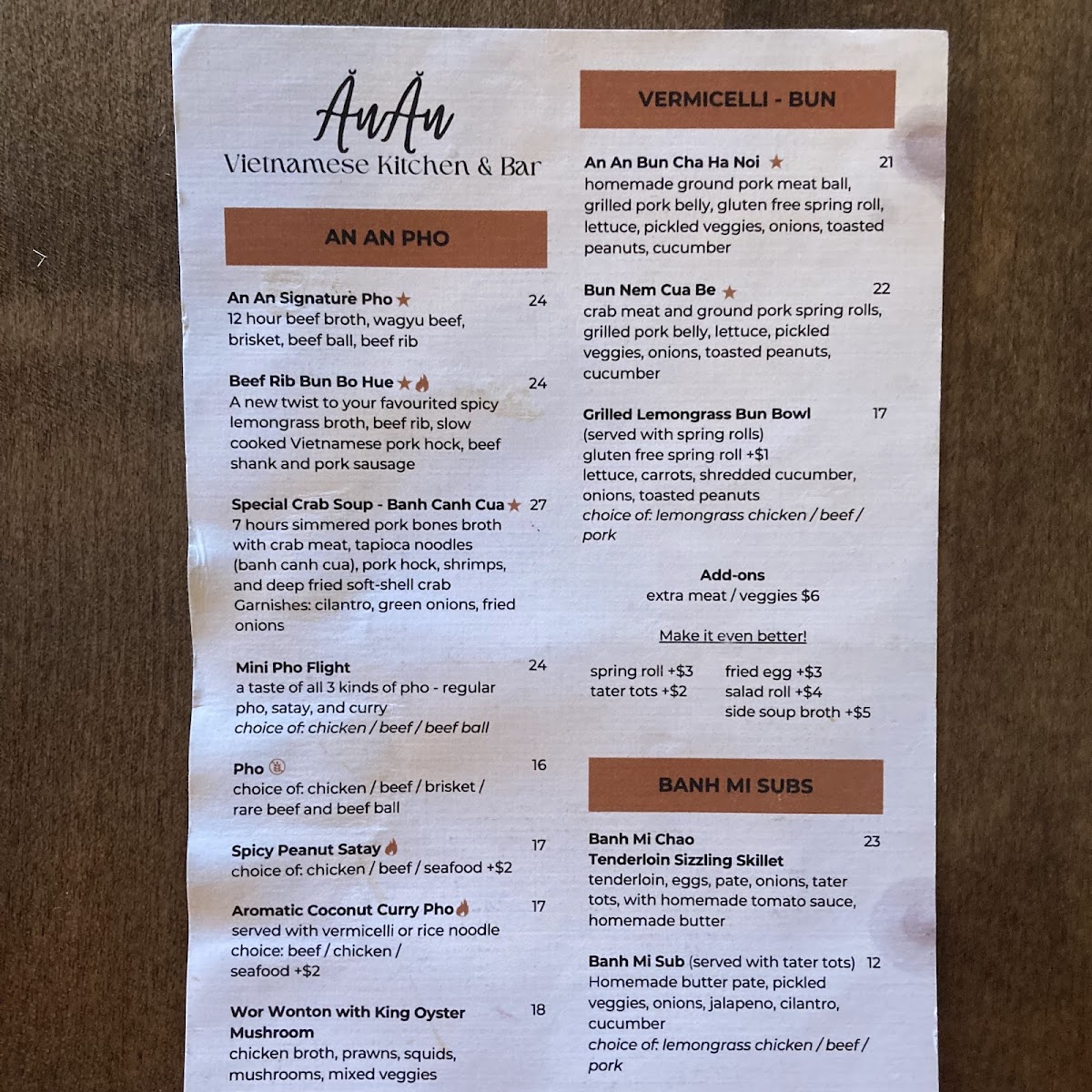 Welcome to An An Kitchen & Bar, a vibrant culinary gem located at 1111 7 St SW, Calgary. This unique Vietnamese restaurant captivates diners with its creative menu, where traditional flavors meet modern twists. Each dish is thoughtfully crafted, showcasing fresh ingredients in colorful presentations.